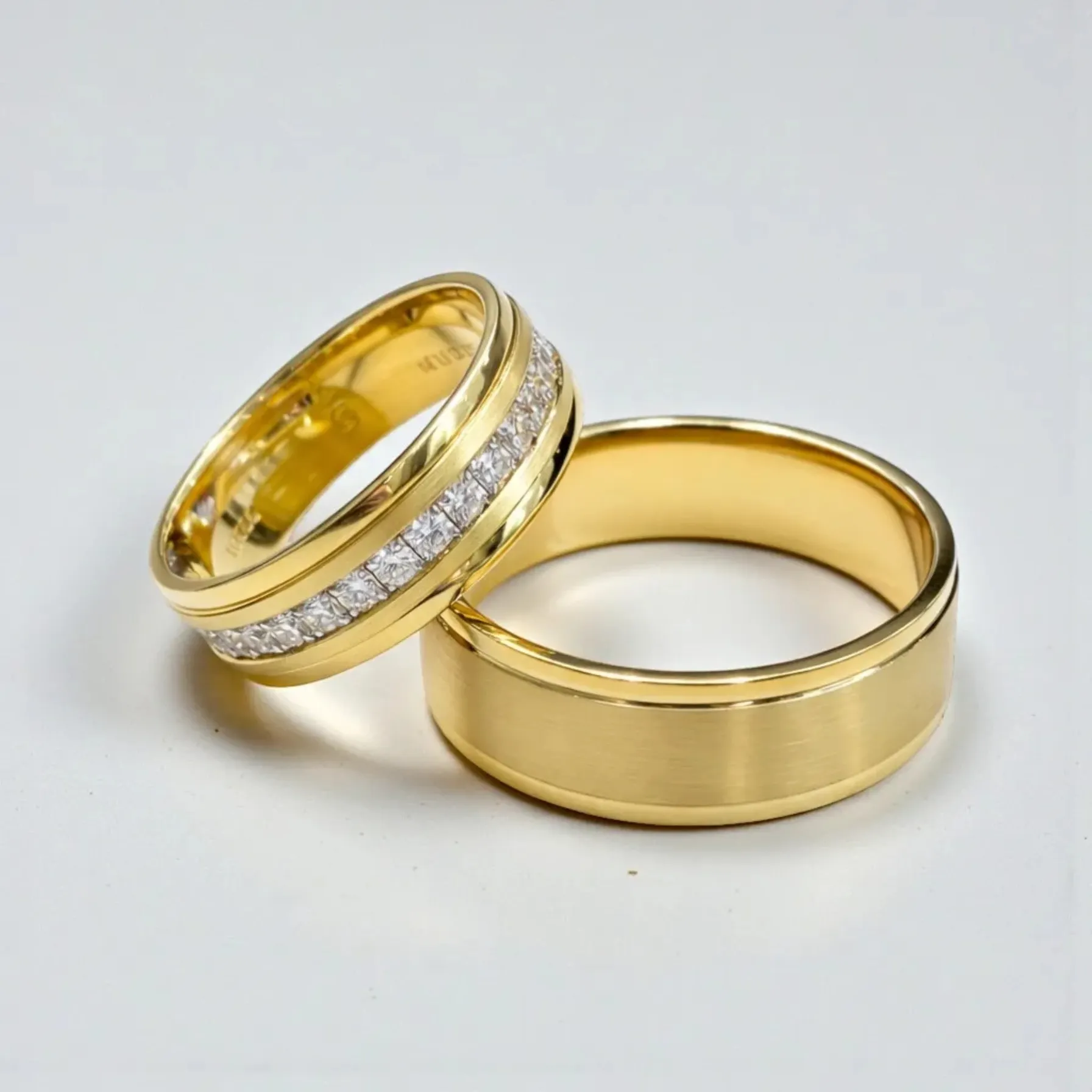 set verighete din aur 14K model gravat cu diamante