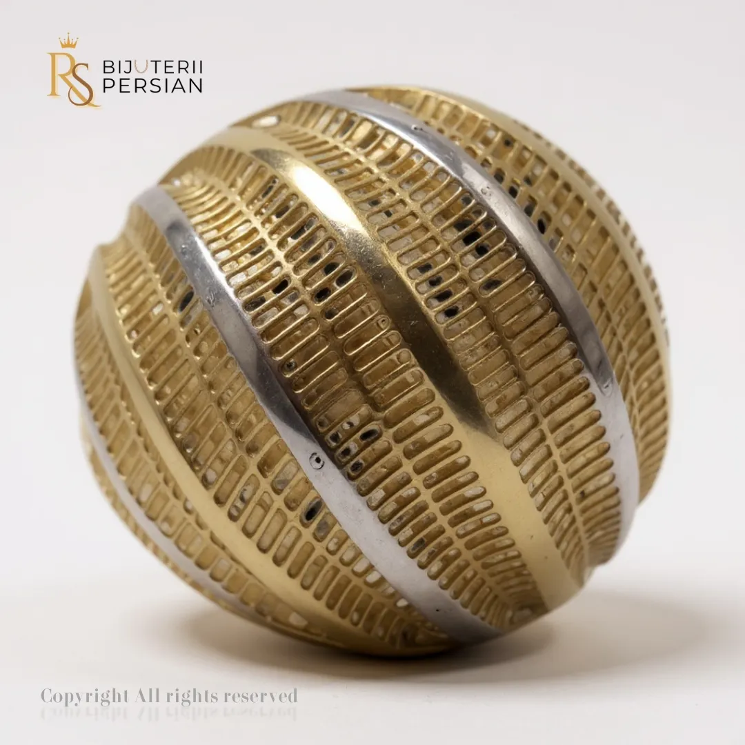 Acest inel lat din aur 14K impresionează prin textura sa decorativă în relief și linia bicoloră elegantă care traversează designul. O bijuterie modernă, cu un aspect sofisticat și lucrată cu precizie, perfectă pentru femeile care preferă stilul contemporan și modelele expresive.