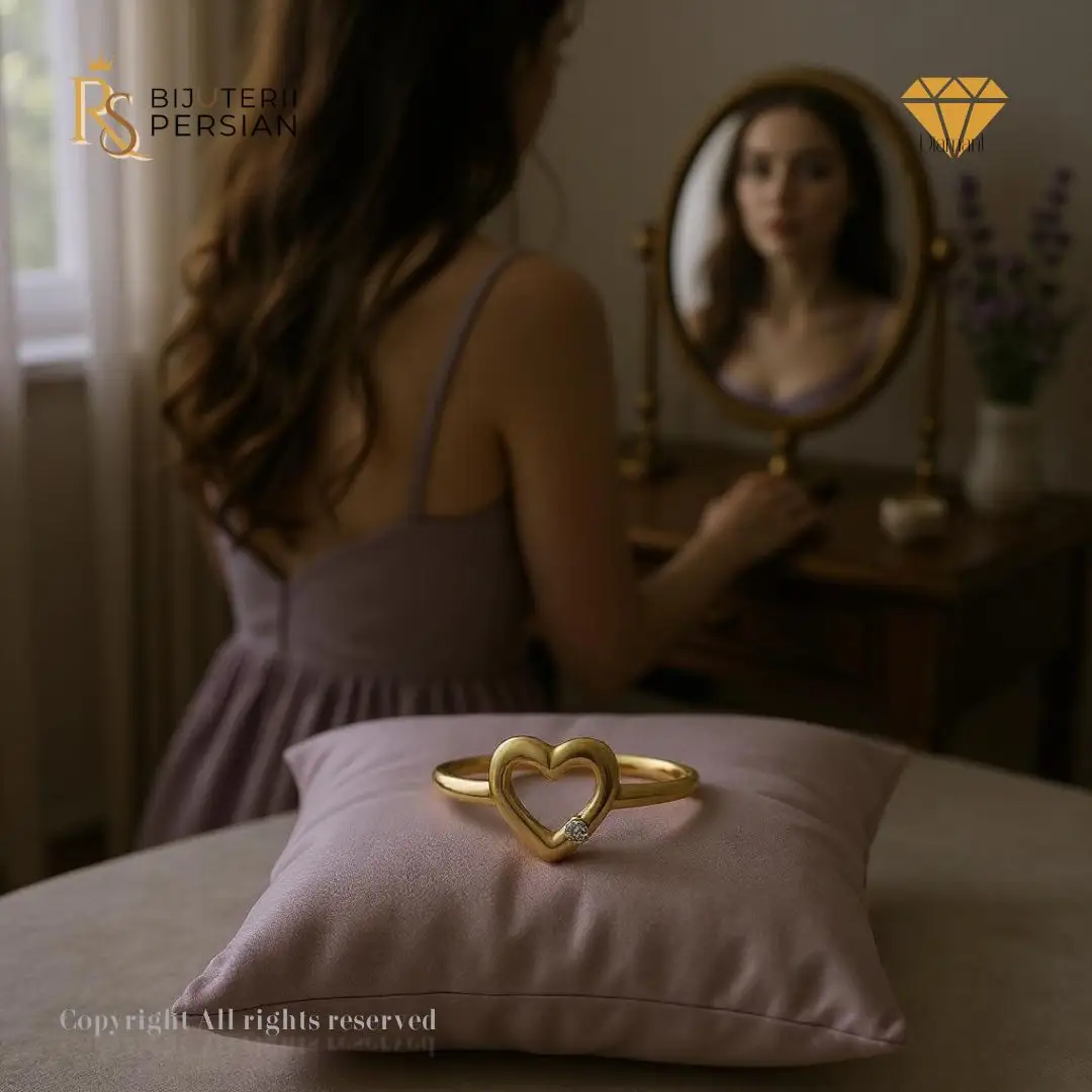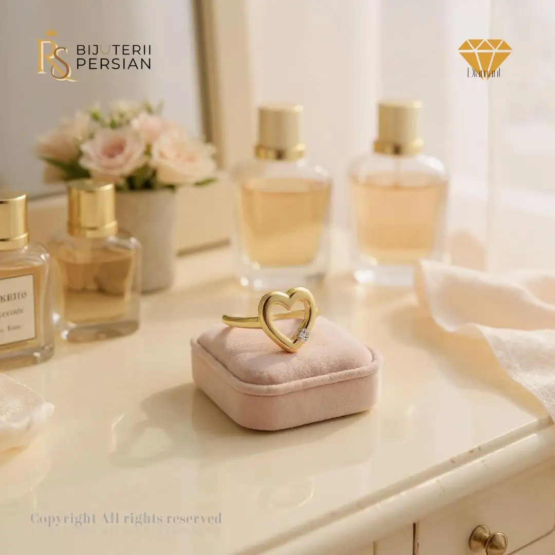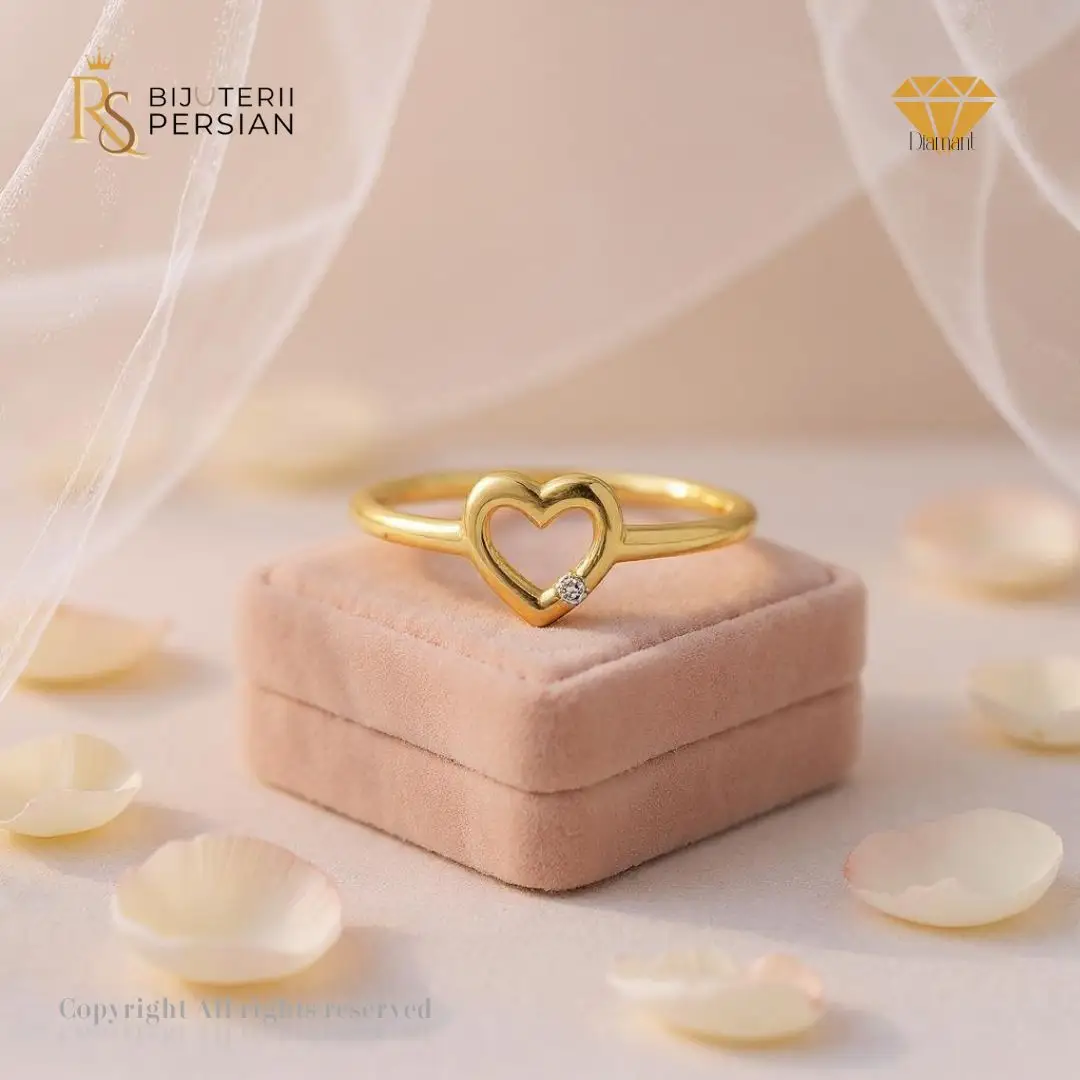 Inelul „Amor” este realizat din aur galben de 14K, având un design delicat cu inimă decupată și un diamant natural de 0.01 ct certificat IGI – ideal pentru a celebra iubirea și feminitatea.